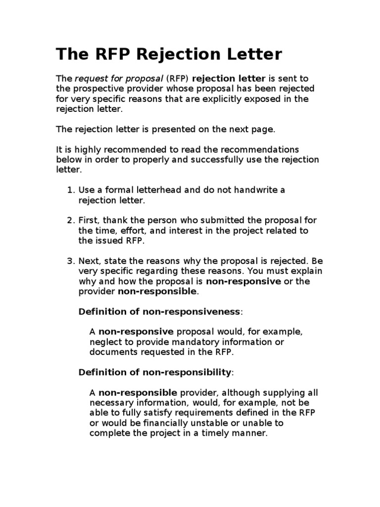 Rfp Rejection Letter Request For Proposal Government